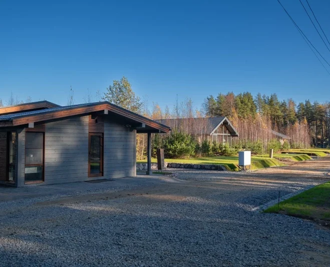 Мы отказались от пестроты и эклектики в пользу благородной сдержанности. Все дома выполнены в едином стиле: натуральные материалы, лаконичные формы, продуманные пропорции. Это создает ощущение порядка, статусности и настоящей архитектурной ценности. Поселок выглядит дорого не из-за отдельно взятого дома, а из-за их безупречного единства.